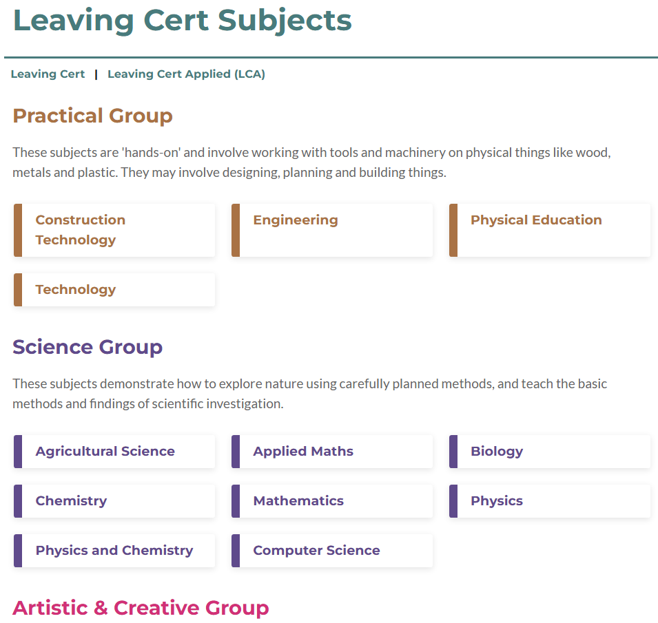 You can explore the comprehensive Subject Choice area on CareersPortal here.